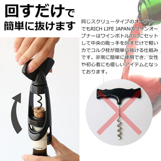 [RLJ] ワインオープナー 【スクリュープル (回すだけで簡単に抜けます)】 ワイン 栓抜き シャンパン コルク抜き ワインおーぷなー ボトルオープナー オープナー シャンパンオープナー ワイン栓抜き コルクスクリュー ワイングッズ ワイン用品 (ブラック)