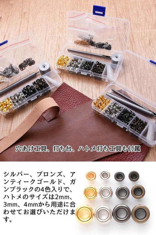 [TK&Co.] レザークラフト ハトメ 穴あけポンチ ハトメ割りうち台 はとめセット (ハトメ3mm)