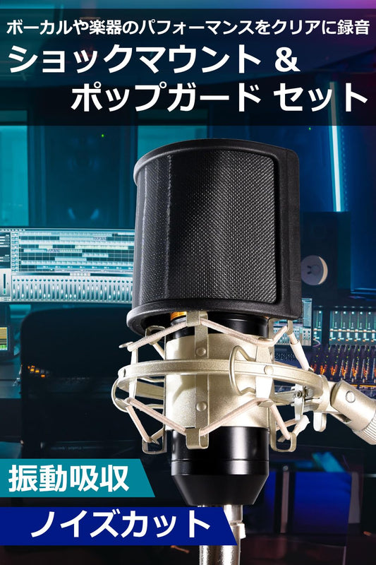 [YCsalto] ショックマウント ポップガード マイクノイズ防止 直径45-50mm対応