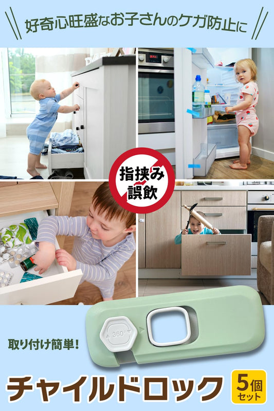 [wanoa] チャイルドロック ベビーガード ドアロック ストッパー付x5個セット