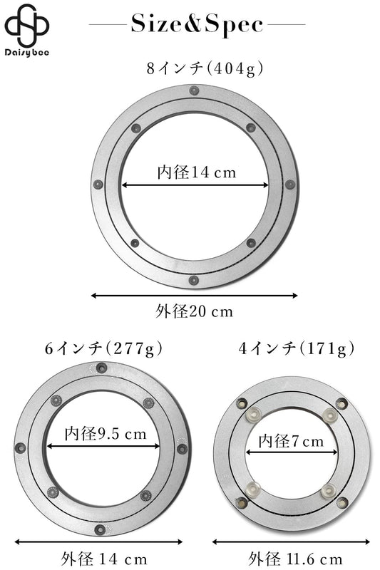 回転台 回転盤 回転テーブル台 回転プレート アルミニウム合金 8インチ