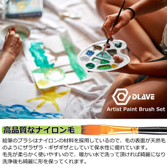 [DLAVE] アクリル絵の具 筆 12本セット (スタンド可能収納ケース + パレット + パレットナイフ + スポンジ付属!) 絵の具 絵筆 ペイントブラシ 面相筆 【 お絵描き 絵画 ネイル フェイスペイント 陶芸 プラモデル 塗装 等の 芸術 作成に】 アクリル絵具 平筆 水彩絵の具 ふで 絵の具セット アクリルガッシュ えのぐ 水筆