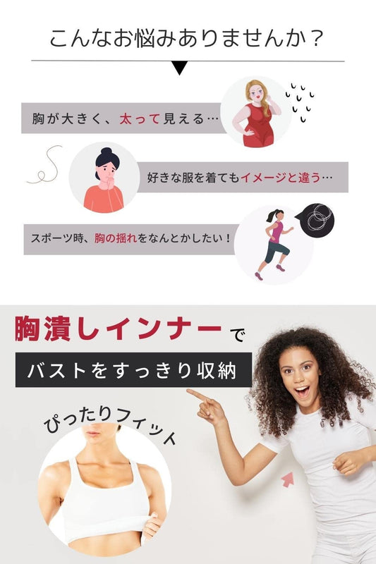 [PhoenixJ] ナベシャツ 胸つぶし (適度な締め付け感) 小さく見せるブラ (S, ブラック)