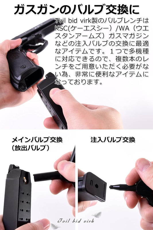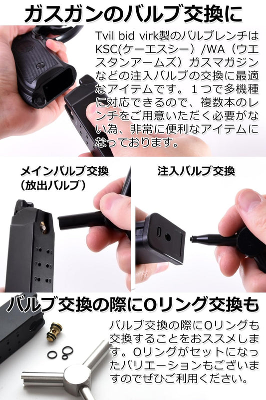 [Tvil bid virk] バルブレンチ Oリング付き バルブツール ガスブローバック マガジン対応 GBB 放出x注入 バルブ工具 (ブラック-Oリング付き)