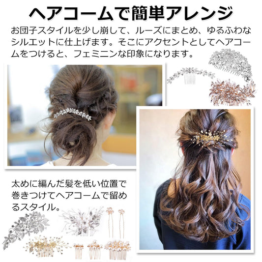 髪飾り ヘアコーム ヘアアクセサリー フォーマル ブライダルアクセサリー ヘアピン 髪留め ヘアアクセ ヘッドドレス ティアラ バレッタ ウェディング アクセサリー ドレス かみかざり ヘアアレンジ 小物 かみどめ 【FLOWER STYLE】 (タイプD)