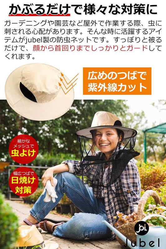 [jubel] 防虫ネット 帽子 虫除けネット 虫除け帽子 【4種類】 園芸 ネット 「 虫 刺され予防 に です」 紫外線対策 園芸 農作業 アウトドア 防虫グッズ