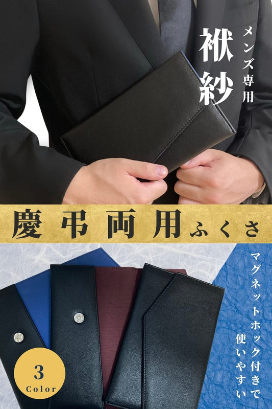 [my&G] ふくさ (メンズ専用) フォーマル 結婚式 慶弔両用 (マグネットホック) 袱紗 (ブラック/グレー)