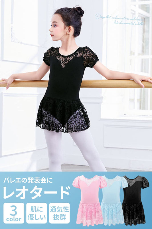 [my&G] バレエ レオタード 子供 (レーススカート付き/肌に優しいコットン素材) 新体操 練習用 競技用 ピンク/150