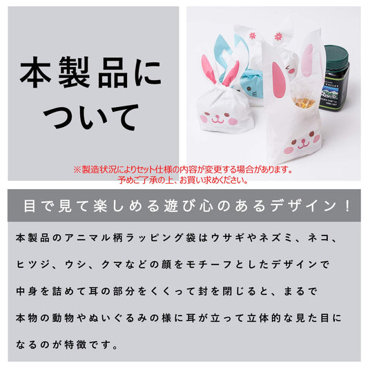 [ORICHALCUM] ラッピング袋 ギフト 小分け袋 (100枚セット/25種) 「かわいい 動物の耳付き!」 プレゼント包装